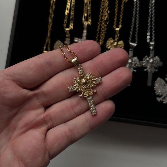PLNDSKI Iced Cross Eagle Necklace - Gold
